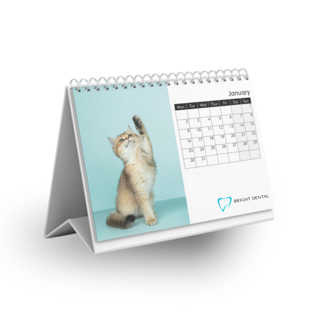 Our personalised desktop calendars are a low-cost, highly valued corporate gift. CalendarPrint’s stylish designs include your logo, contact details and slogan if desired. These monthly desk calendars are highly visible on your recipient’s desk all year round, reinforcing your brand and message. Small, neat and easy to distribute, promotional desk calendars are also perfect for trade shows or conference show bags.